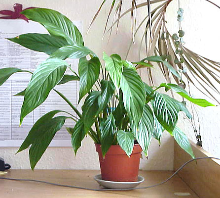 Peace lilies are supposed to absorb harmful energies from the computer, and the look really nice too.